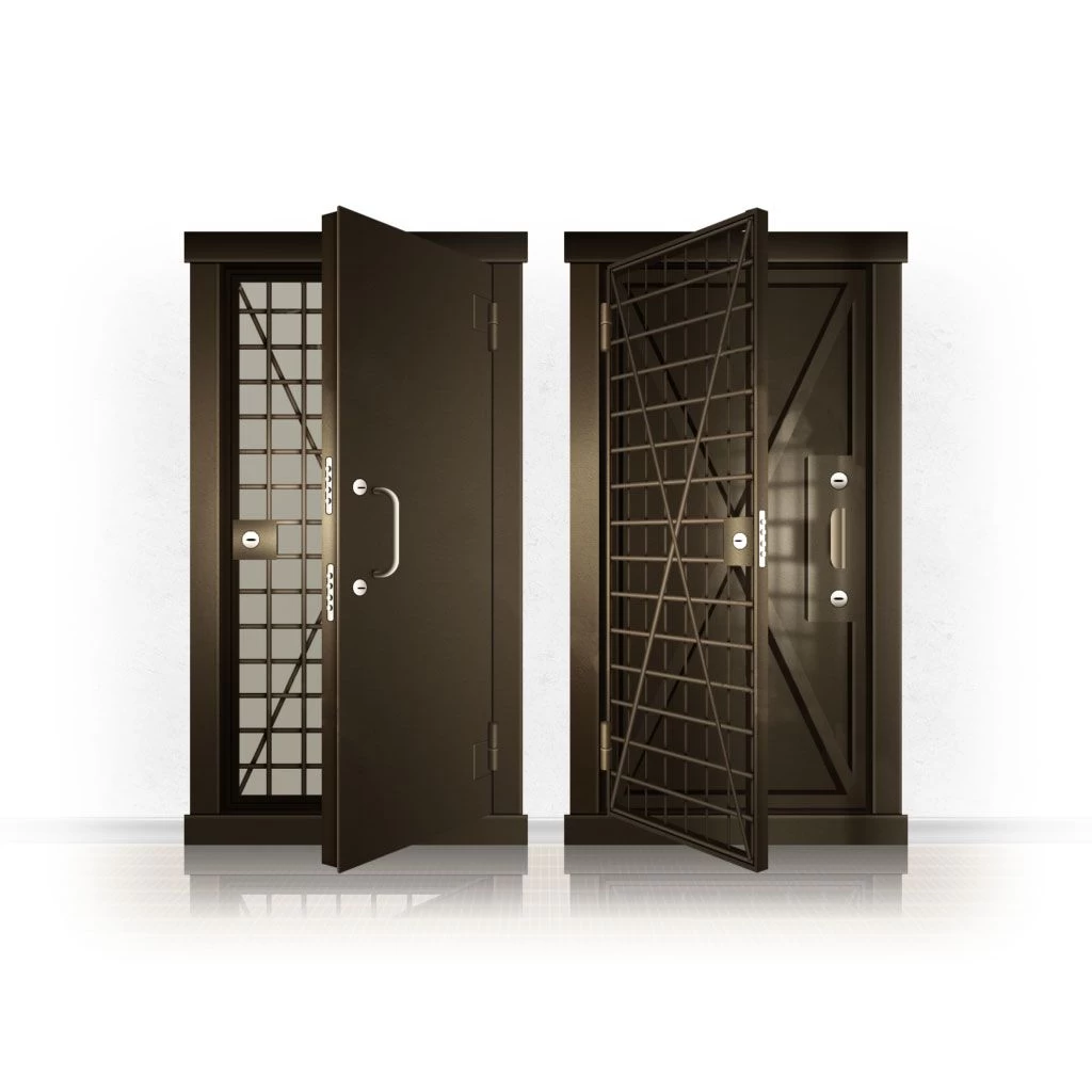 Металлические двери КХО и КХН представляют собой входные блоки, обладающие высоким уровнем взломостойкости и состоят из трех основных элементов: усиленного каркаса, сплошного металлического полотна и решетчатой двери. Дверной блок изготавливается из стального уголка 100*100 мм. Места крепления блока к стене цементируются и закрываются стальными наличниками шириной 40 мм. Крепеж заходит вглубь стены на 80 мм. В конструкции внешней створки монтируются ребра жесткости, для обшивки используется сталь толщиной не менее 3 мм. Внутренняя решетка изготавливается из прутка диаметром 16 мм. Размер ячеек решетки должен составлять не более 15 на 15 см. В точках пересечения прутья надежно приваривают друг к другу. В КХО и КХН необходимо поддерживать определенную температуру и влажность. Для этого внутреннее пространство глухой двери заполняется теплоизоляционным материалом, а по периметру двери приклеивается уплотнитель. Такие двери оборудуются замками с повышенным уровнем взломостойкости. Специализированные двери КХО и КХН в Избербаше могут быть оснащены сигнализацией, в конструкции могут быть проушины для навесного замка и элементами для опечатывания. Если идет речь о двери в комнату хранения оружия, в створке оборудуется окно для выдачи оружия и спец. средств, которое накрывается стальной дверцей.