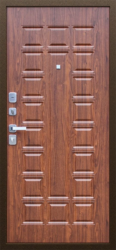 Надежная входная Дверь Спартак Орех темный премиум класса по цене 34 440 руб. Большая толщина стали защитит от проникновения в ваш дом, квартиру или коттедж. Используется очень качественная фурнитура: замки, цилиндры, ручки, защелки. Покрытие и отделка двери изготовлено под внимательным контролем производителя. Дверь имеет долгий срок службы и гарантию.