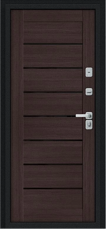 Дизайнерская входная Дверь Браво Thermo Техно Д2/BChrome Букле черное/Wenge Melinga класса Люкс с несколькими листами стали, звукоизоляцией и теплоизоляцией. Утепленный короб и полотно защитят от сквозняков и шумов. Модель не только надежная, комфортная, защищенная и высочайшего качества, но и очень красивая! Будет отлично сочетаться с интерьером дома, квартиры или офиса. Сейчас действует выгодное предложение по цене: 57 990 руб.