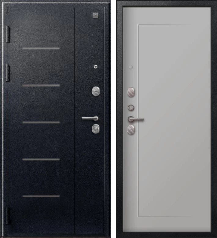 Надежная входная Дверь V-03 Черный муар - Кашемир сильвер премиум класса по цене 43 040 руб. Большая толщина стали защитит от проникновения в ваш дом, квартиру или коттедж. Используется очень качественная фурнитура: замки, цилиндры, ручки, защелки. Покрытие и отделка двери изготовлено под внимательным контролем производителя. Дверь имеет долгий срок службы и гарантию.